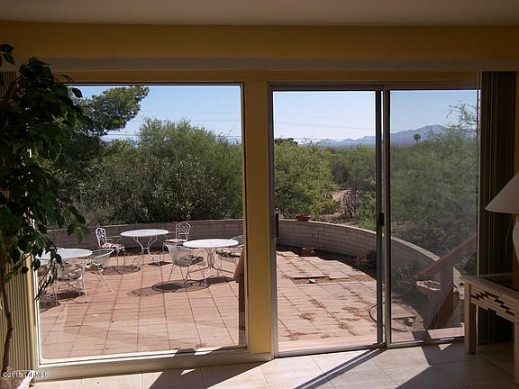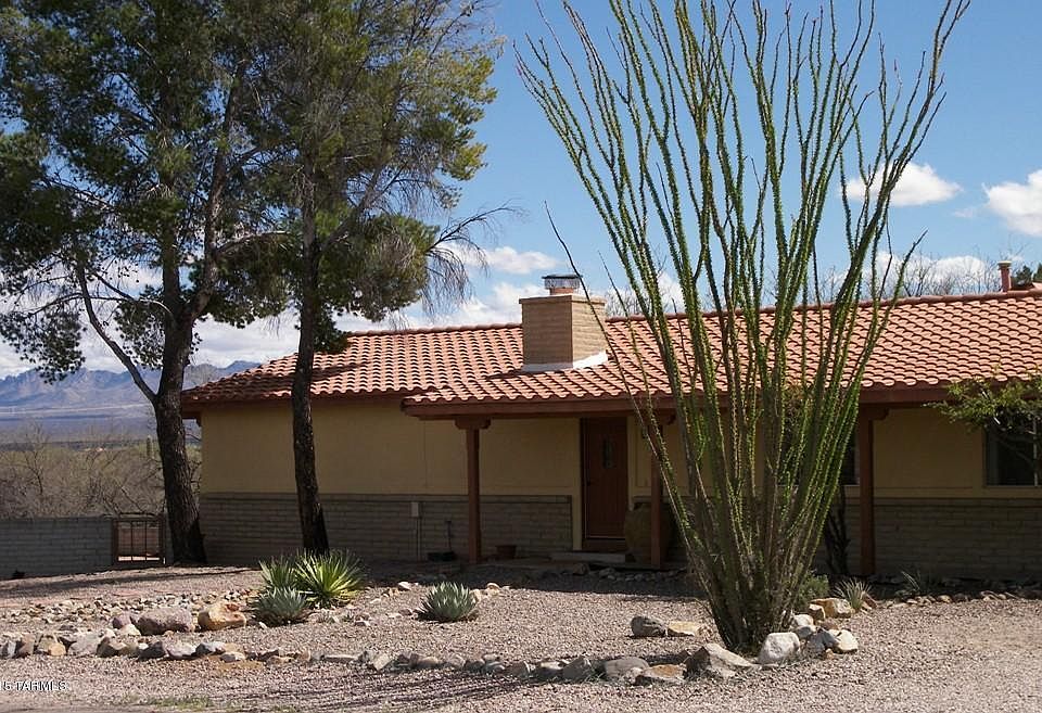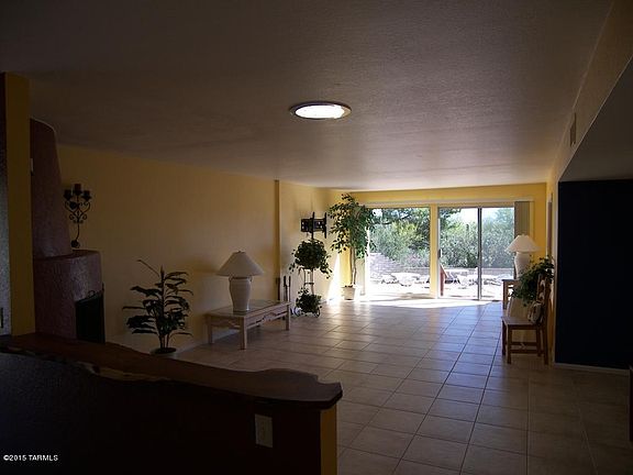Sprawling ranch w/tile roof on 1.18AC RVs allowed! Big, updated kitchen w/Corian counters, rollouts, lazy susan, island with seating, buffet w/wine rack & more. Beehive FP at one end of living rm. and sliding doors at the opposite end over looking a patio sized to accommodate large gatherings. Unique setting literally minutes away from shopping & dining. Nature lovers delight with Mtn. views, mature trees and an arroyo running through the property frequented by deer, quail and other desert wildlife. Nice spacious rooms, ceramic tile floors except in the 3 BRs, 2 full baths & one 3/4 bath plus a den adjacent to the kitchen & living rooms. Not through yet, there is a 540sf shop that was a pottery studio with windows, 112sf laundry rm & 142sf storeroom. Lots of potential! No HOA. All ages.