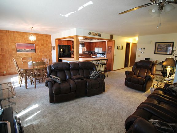 Upper level of this lovely home has 3 bedrooms, 1.5 baths with open kitchen,dining room, living room. Lower level has master bedroom, 1 bath, large great room with fireplace and utility/furnace room. 2 car attached garage. Patio and large backyard.