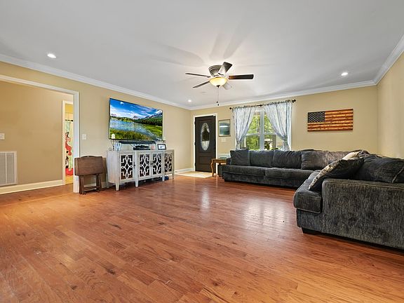 Located between Livingston and Cookeville, this adorable one-story home offers over 1520 square feet of living space, 3 bedrooms, split bedroom floor plan, 2 full baths, hardwood and vinyl flooring throughout, large open living room, kitchen with all stainless steel appliances and island, open dining room, mudroom off the 2-car garage, open deck overlooking the large backyard with small creek running along the back side of the property and situated at the end of the cul-de-sac next to a cute mini farm.