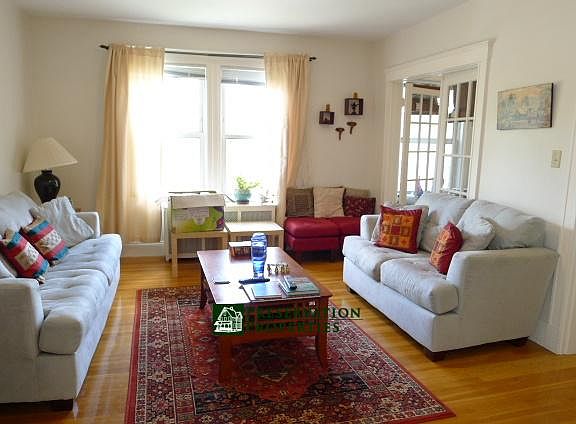 Oversized two bedroom apartment with a little den or study off of each bedroom. Completely spiffed up with nice hardwood floors & tiled bath with granite vanity top and a large & fully applianced eat in kitchen. Two 3-season porches for fresh air when its not too hot out. Central Air Conditioning and Coin Op Laundry right in the house. Convenient to Newtonville, Whole Foods, Newton Corner, commuter rail, express bus. Excellent Credit and references required . Coin op laundry. Excellent Credit and references required