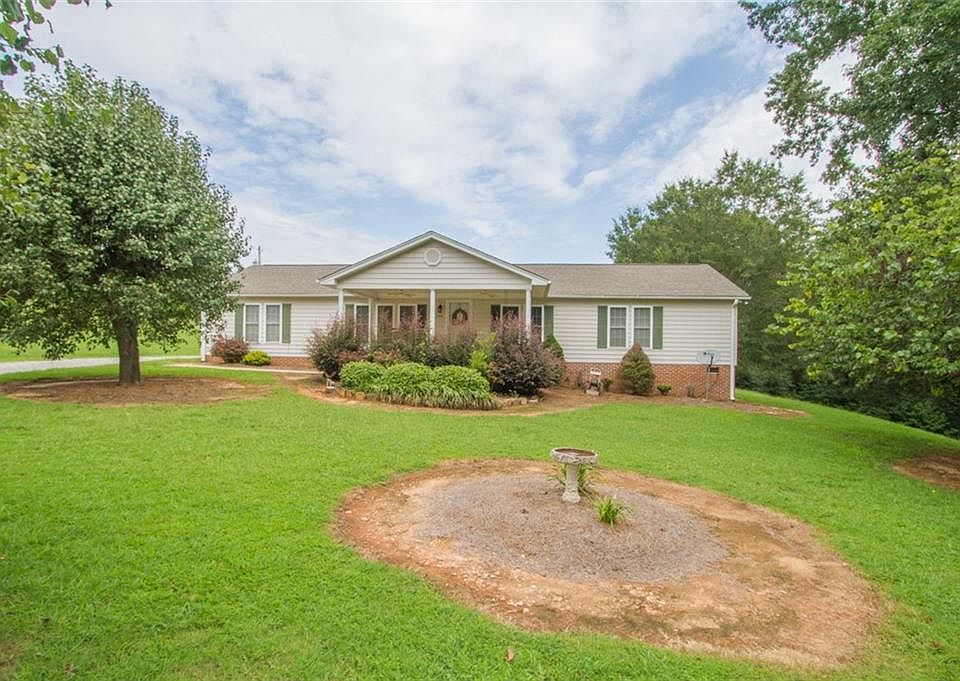 Well maintained 3BR/2BA home secluded in a quiet, peaceful setting on 1.88 acres. Home features a living room with hardwood floors and a fireplace, kitchen with lots of counter space and island, formal dining room, large master suite with double sinks, spacious tiled shower and lots of cabinets. Rocking chair front porch, above-ground pool, doll house (being used for pool storage) and garage in back with plenty of storage space. New roof in 2016.