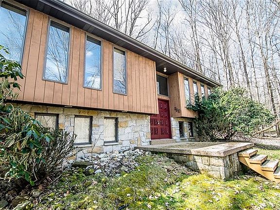 Beautiful home situated on a private 5 acres in Mt Pleasant Twp! Fall in love with the serene setting including peaceful creek running through property. Spacious kitchen/dining/family room with fireplace provide great living area. Master bathroom features luxurious updates. Relax in the great vaulted sunroom featuring floor to ceiling windows and multiple walk out access points. Lower level equipped with finished den/game room, additional fireplace, full bath, and generously sized laundry/utility room. Tons of storage including 2 car attached garage, additional detached garage, and large shed on property. Conveniently located minutes from Rte 50 and Interstate 79, entertainment at The Meadows Racetrack/Casino, and local shopping including Tanger Outlet Center!