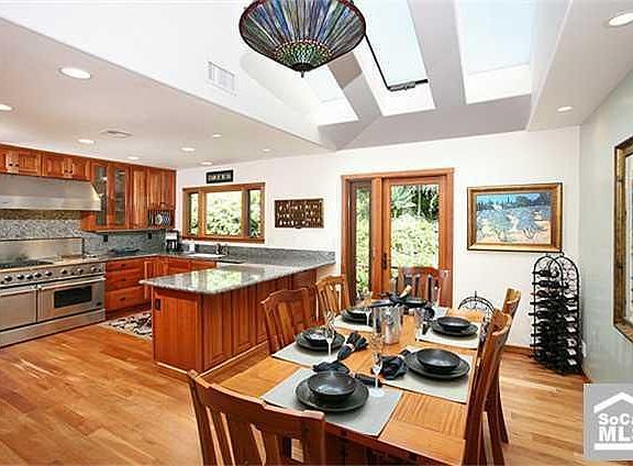 Perfectly situated on a quiet cul-de-sac, this modern California Craftsman inspired home will impress the most discriminating buyer. The quality finishes and fine attention to detail enhances the beauty and grandeur of this rare single level home. The formal living room is accented by a high vaulted open-beamed ceiling, hardwood flooring and a romantic wood-burning stone fireplace. The spacious kitchen will wow any gourmet and includes hand built cherry wood cabinetry, a DCS commercial range and granite counter tops. The inviting master suite includes a luxurious bath, walk-in closet, open-beam ceiling and French doors that open to a private pergola. The functional floor plan also features a separate family room with built-in book shelves, two additional bedroom suites each with its own bath, and a laundry room. Beautiful and mature landscaping accent the architectural lines of this serene and peaceful retreat.