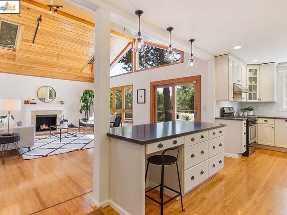 A retreat amongst gorgeous oaks and large pines. Soaring vaulted ceiling, remodeled kitchen, open floor plan and vast deck this home lives like a 4 bedroom/3 bath home, OR a 3 bedroom/2 bath home with 1 bed/1 bath ADU. Providing the versatility of a home office, au-pair unit, space for in-laws, rumpus room, or a rental! A shared private driveway with dedicated parking pad provides convenience in and out of the home with easy access to Thornhill and Montclair Village retail, schools and public transportation. Easy freeway access to San Francisco, Marin County and the Peninsula. Minutes to the Sunday farmer's market, shopping, dining, and BART. Enjoy tranquility close to everything!