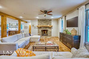 Unbelievable detail and quality of construction with this 4239 SF, 4BR, 3.5BATH home just a short distance from the Valley Springs School. Setting on 12.36 acres with 6 ac of hay pasture making it perfect for a few horses or livestock. Features of the open floor plan house includes engineered hard wood hickory flooring throughout, custom lighted cabinets (with quartz counter tops) and vanities, wood burning fire place (currently with a propane insert), 9' ceilings, high end Anderson windows & doors, Thermadoor propane commercial grade cooking range, 2 game rooms, office, screened in back porch, large 3 car garage (with workshop area), blue tooth whole house sound system, Hardy Board & native stone siding. Outside includes raised beds for your garden and fenced in chicken coop/dog pen.