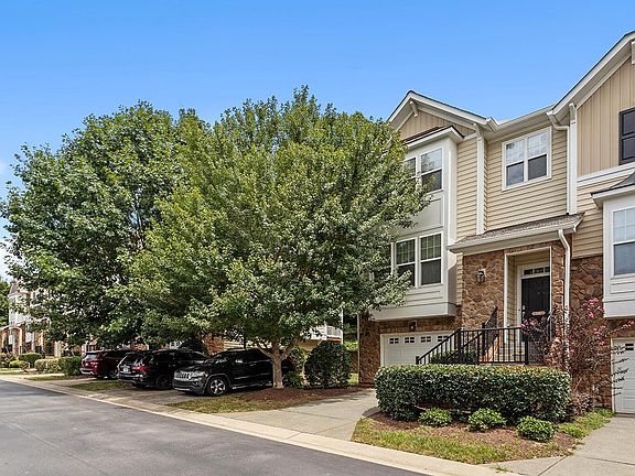 Beautiful three-story townhome with three bedrooms and three full bathrooms, and a single car garage. The exterior is adorned with charming stone accents that give it an exquisite look. The kitchen is spacious and bright, with a breakfast bar, tile backsplash, and solid surface countertops. The second floor features beautiful hardwood flooring in the kitchen, great room, and dining room. The owner's suite bathroom includes dual vanities, which is a great feature. Both the second-floor covered deck and lower patio are perfect for relaxing and enjoying the natural light. Additionally, the townhome is conveniently located near downtown Raleigh and RDU airport. Community amenities-pool, fitness center & club house. Roof and gutters replaced June/July 2023 ****Full bath on basement level was finished August 2023- Seller stated that no permit was required for adding fixtures and lighting because rough In plumbing and electrical was already in.