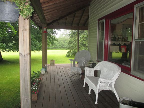 Do you dream of a farm house in the country with lots of space, character, hard wood flooring, wood work, barns and a yard to enjoy...this is it! This home sits on a quiet dead end road only minutes from town. It features an updated roof, siding, most of the windows have been replaced, newer wood boiler, pellet stove, 8x6 exterior sauna, 13x19 guest house, garage, large barn, shed and 3 acres. The guest house has propane space heat and electricity. The garage/workshop/storage area is 20x84 and there is also a 52x75 barn with silo. The home has a nice size kitchen, large dining room & living room, main floor laundry, partial basement with cold cellar. There is 1 bedroom on the main floor and 4 upstairs with one being a walk through. You would use the forth as a bedroom or turn it into a walk in closet. The yard has fruit trees, bonfire pit and a wrap around deck.