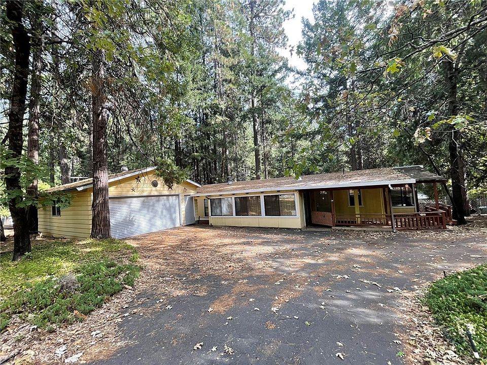 Welcome home to this great property located in the quaint mountain community of Magalia. Situated within the POA, the lucky new homeowners will have access to amenities such as tennis courts, swimming pool and the POA village. The home itself has great curb appeal, and is positioned nicely on a corner lot with a paved circle drive and white picket fence. The split floor plan is particularly charming with vaulted beamed ceilings, dining room with built in hutch, bonus wet bar, and sunny kitchen. The primary ensuite is generous with extra counter and cabinet space in the bathroom, and both a stand up shower and separate soaking tub. It also has it's own access to the rear deck. Bonus! There is an enclosed sunroom off the living area! Tons of parking with room on the street, driveway, and an oversized 2 car garage.