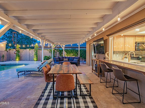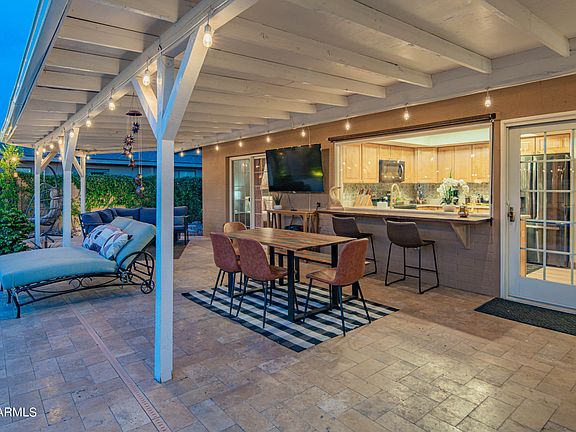LUX BEAUTIFUL VACATION RENTAL THE HEART OF FUN SCOTTSDALE! This beautiful NEWLY REMODELED 4 bed, 2 bath has everything you need for FUN IN THE SUN! A suffleboard, ping pong table pool basketball add to the fun. You'll also find spacious dining & living areas w/gorgeous wood-look floors, an impressive stone fireplace, elegant light fixtures, & designer palette throughout. The fabulous kitchen is comprised of oak cabinetry w/quartsite counters, tile backsplash, a pantry, SS appliances, & a breakfast bar. The primary bedroom features private outdoor access w/French doors, a walk-in closet, & pristine ensuite w/dual sinks. The backyard includes a covered patio, lush grass area, a lovely gazebo, and a refreshing pool perfect for the any weather! Minutes from the Airport, Arcadia and Old Town
