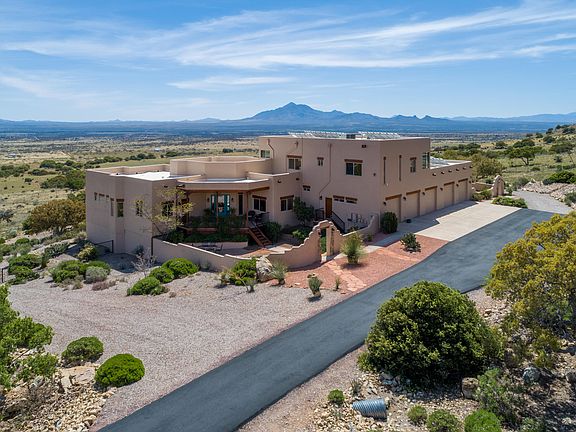* Picturesque, meticulously maintained, total 7BD/7BA, 6994 sqft home on 5 secluded acres in the Huachuca Mountain Foothills featuring 2 private-entrance residences joined by a multi-use common space, perfect for multi-generational families & travel hosts alike. Home is equipped with 13.5kw of owned solar cells, avg. electric ~$30/month! Enjoy cool mountain temps & sweeping valley views from full-length covered patio/multi-tiered deck including outdoor kitchen area w/ fireplace. 5BD/4BA 2-story main residence features great room w/ viga poles, fireplace + wet bar; gourmet kitchen + adjoining butler's pantry. Spacious owner's suite w/ fireplace, sitting area & luxurious bathroom. Office w/ private entry. Guest Quarters is a single-story version of main residence & equally as spectacular.