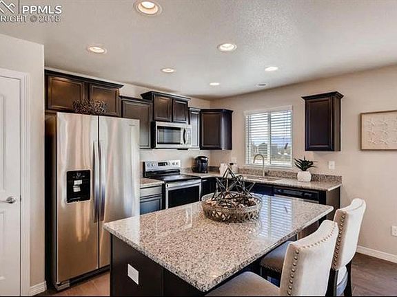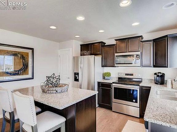 GORGEOUS single family residence located in the most developing and desirable area of Colorado Springs! New home, only a few years old. Minutes from the Powers Corridor and Peterson AFB. Home has model home options throughout, open, very spacious floor plan, finished walk out basement with fenced yard and deck overlooking Pikes Peak Mountain range. This beautiful home boasts all stainless steel appliances, granite countertops in kitchen and all bathrooms, hardwood floors in entry and kitchen, ceramic tiling in all bathrooms, and upgraded plush carpeting throughout. Washer and dryer included and conveniently located on the second level. Tons of windows for natural sunlight and stunning views of Pikes Peak. Central A/C as well as central humidifier and ceiling fans in every room. Close to all new developments and amenities of Banning Lewis and Stetson Hills.