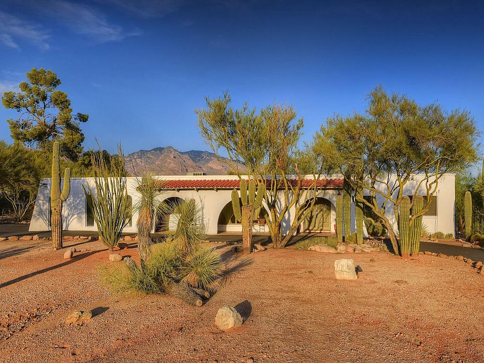 Stunning Territorial home - private location - serene and tranquil with a great entertaining backyard. Main living quarters all on one level - full quest quarters on lower level has full living/dining/kitchen/bathroom. Great location for a college student, long staying guests. Could also make a great private studio or office. Main home had a beautiful master bathroom makeover in March 2016, new wood laminate flooring added in dining room, parlor/living room and all bedrooms. Kitchen has stainless steel appliances. All bathrooms & kitchen have updated faucets. Cozy family room w/beehive fireplace. Back porch sprawls from one end of the home to the other with an outdoor BBQ station off the kitchen door. Spacious workshop/storage shed on property. Roof has been recoated every few years
