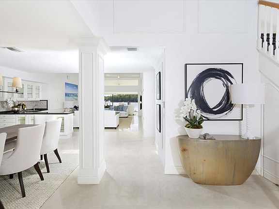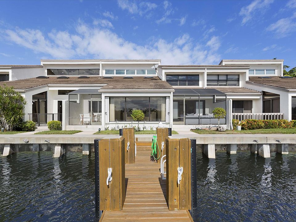 LocationNorth Ocean Boulevard, Ocean Ridge, Florida. Offering a wonderful waterfront lifestyle in a boaters haven, guard-gated Pelican Cove is comprised of 40 townhomes, all having their own docks, nestled around a sheltered cove of the Intracoastal Waterway. Residents enjoy a lovely community pool, clubhouse, and fitness center plus on-site property management. Pelican Cove is within walking distance of the beach in peaceful Ocean Ridge, one of the Gold Coasts best-kept secrets.Property Relaxed coastal style takes on a California-inspired flair in this waterfront townhome in a choice position giving a splendid southerly view over the serene cove to a lush nature preserve. Right at its doorstep, the extra-large full-service dock has room for two 43-foot boats, with quick access to the Boynton Inlet. Beautifully landscaped, the gated entrance courtyard captures the gentle sounds of an artistic fountain. ResidenceEffortless living and entertaining are at home in the open living areas of this comfortable townhome with three bedrooms, two and a-half baths, marble and bamboo floors, impact-glass windows, and a two-bay garage included in the total of 3,940 square feet. Entered from the soaring open foyer, the great room focuses on the picturesque cove view through a solarium that opens to outdoor living areas on airy screened lanais to either side. A skylit vaulted ceiling enhances the rooms marvelous sense of space and light, with a centrally placed wet bar that also serves the open dining room facing the garden courtyard. The gourmet kitchen has white lacquer-finish cabinetry, granite counters, and appliances by Wolf, Sub-Zero, Bosch, and Miele. In a large private wing, the relaxing master suite opens to the water view through a lanai and features two walk-in closets plus a marble bath with jetted tub, glass-block shower, and breakfast bar. Off the upstairs loft are two bedrooms with a bath, one overlooking the cove and another with a balcony above the courtyard.