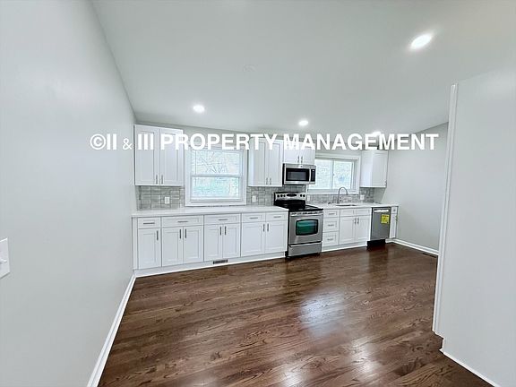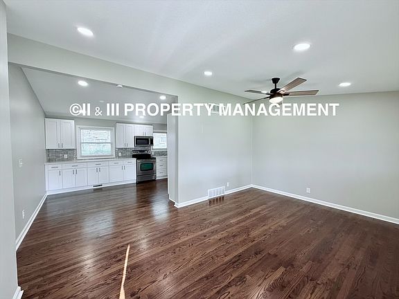 Completely updated RANCH! 3 conforming 4th non conforming bedroom 2 full bath Gladstone home. Hardwood floors throughout the entire home. Bright family room that leads in to the stunning kitchen. Quartz counter tops, stainless steel appliances and tile backsplash. 3 bedrooms and first full bath located on one side of the home. Second family room with fireplace. Partially finished basement that could be used as a 3rd family room. Basement also has 4th non conforming bedroom and second full bathroom. LARGE fully fenced backyard. Rent is $2000/mo with a $2000 deposit. Pets welcome with a $500 non refundable pet fee and an additional $25/mo per pet.