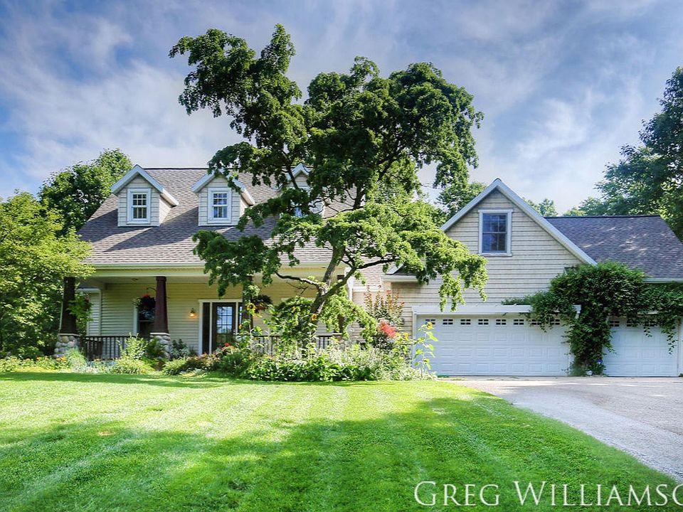 Hobby farm lovers feast your eyes on this 2002 custom built 5 bedroom, 2.5 bath home with over 2800 sqft of living space. Features include walkout basement, 3 stall garage, and park-like private lot that has 8.7 acres including woods and an active hobby farm that has been maintained by current owner. Located in Thornapple Kellogg School District, the main floor boasts a generous living room with vaulted ceiling, stone fireplace, formal dining room, kitchen with center island, eating area, Master Suite with walk-in closets and private bath with jetted tub, two additional bedrooms, another full bath, and half bath. Upper level has rec room, bedroom, and den/study. Lower walkout level offers spacious family/entertainment room, 5th bedrooms, 6th nonconforming bedroom, and laundry. This property offers a fully functional hobby farm complete with pastures and sheds to house livestcok and large fenced in gardens for growing food. Mixed hardwoods and evergreens line open space creating a dynamic landscape that compliments the home all year long. Beautiful mature landscaping and a meticulously manicured lawn with underground springkling make this property feel like a vacation oasis. A woodland pond even boarders the edge of the property. If you are interested in a wilderness setting away from the hustle and bustle yet an easy commute to Grand Rapids, this house offers a unique and peaceful lifestyle opportunity of self-sufficiency and sustainability.