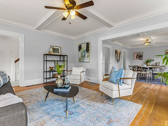 Step into the perfect Portland Bungalow with a huge porch in front and an idyllic breakfast nook surrounded by windows in the back. Set back on a quiet street with gorgeous bamboo greenery, this home is a peaceful retreat and a perfect home to live in and update along the way. Prepare to be charmed by the original dining room built-ins, high, coffered ceilings, and built-in office upstairs. With one bedroom on the main and three upstairs + a bonus space, there is plenty of room for all your needs. The unfinished basement provides a workshop space and storage for all your seasonal gear. With a brand new roof in 2022, new water heater in 2021, and fresh interior paint throughout, this sweet home is ready for your finishing touches! [Home Energy Score = 3. HES Report at https://rpt.greenbuildingregistry.com/hes/OR10215555]