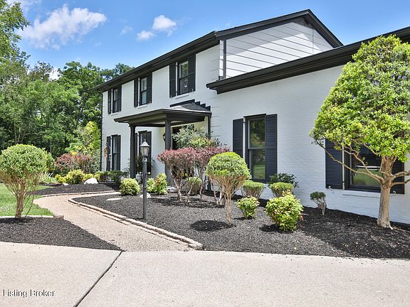 Nestled at the end of a cul-de-sac on a sprawling .75-acre private lot in the coveted Hunting Creek Subdivision, this stunning finished walk-out home offers breathtaking views! This freshly painted two story brick home boasts 5 bedrooms, 4 baths and over 4,200 finished livable square feet. Step inside to find a spacious and airy living room that seamlessly flows into an expansive dining room adorned with a bay window — an ideal setting for family gatherings. The dining area transitions into a generously sized eat-in kitchen, complete with all appliances, ample cabinets, a tasteful tiled backsplash, beautiful granite countertops and an extra eat-in area. Adjacent to the kitchen is a cozy family room featuring a fireplace with built-in bookcases. One of the standout features is the large all seasons room with glass sliding door panels and skylight, offering a perfect spot to admire the scenic backyard. Completing the first level, you'll find a half bath and 2.5 car garage entry. Upstairs, explore four sizable bedrooms, including a master en-suite with its own walk-in closet! A second spacious hall full bath, complete with a linen closet, serves the remaining 3 bedrooms on this level. Recently finished, and completing the second level, you'll find a sizable bonus family room or media room with its very own split unit so you can control temperature to your liking. The lower level walk-out adds flexibility, featuring a fifth bedroom, mother-in-law suite or home office (however you choose to use it!) with an en-suite bath. There is a spacious recreational room with another fireplace that opens onto a patio and fenced yard space. The laundry room is also located in the basement. Additional perks include a laundry chute, wet bar, and window treatments throughout. This home combines comfort, abundant light and space, and a wide array of layout options, making it an ideal choice for savvy buyers wanting a turn-key option in the Hunting Creek neighborhood! The neighborhood's clubhouse has recently been remodeled and offers tennis, swim and golf at different membership levels!