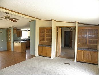 Large manufactured home on 3 country acres near I-65. Home has nicely sized bedrooms, big Kitchen with laminate floorcoverings, lots of cabinets and a small center island, just off that is a great Family Room with Woodburning fireplace , built-in cabinets and good window exposure. 3 Bedrooms and 2 Baths with split floorplan and there is a deck off the Living Room at the back. Property is Case No. 151-697065.