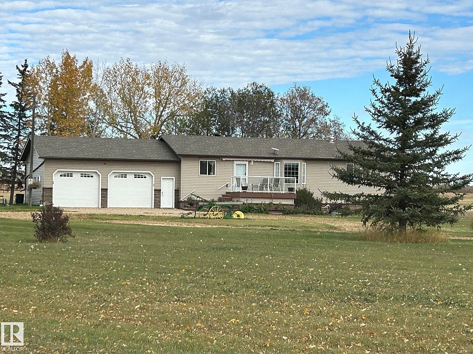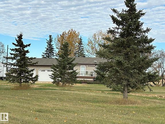 Great family home on gorgeous 3 acres a few minutes NW of Westlock, about a ½ hour to St Albert. Room for everyone in this 1770 sq ft 5 bdrm, 3 bath bungalow. Substantial upgrades over the past 20 years include siding, soffits, paint, HOT WATER ON DEMAND, high efficiency furnace, wood stove, and back deck. In 2018 CENTRAL AIR CONDITIONING was added along with a GENSET SYSTEM which automatically turns on if the power goes out and powers the whole house. At that time new flooring and a maintenance free front deck were also added. Other features are IN FLOOR HEATING in basement, pantry, 3 pce ensuite with soaker tub, main floor laundry, main floor office, back up sump pump system. Heated garage built in 2016 has 2 floor drains and a handy back porch area for boots and coats. Main floor also has a large flex room and office space. Garden area and raised garden beds, storage sheds, mature trees and view from front deck of a small lake complete this great property. Even room for animals on this 3 acres.