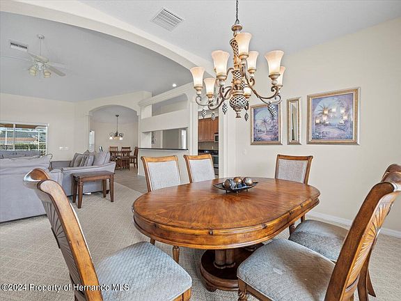 Beauty abounds in this Custom Built 3/3/2 situated on .41 ac. Corner lot. Side entry garage with walkway to welcoming double doors with custom glass. Open floor plans with Vaulted, Coffered and Tray ceilings. So many architectural detail in this home, just to name a few, arches, columns, rounded corners and high ceilings. 3 separate suites with a big primary ensuite that is large enough for sitting area surrounded by windows looking out to the pool, dual vanities, granite countertops, walk in shower, garden tub and 2 walk in closets. Big pool bath and an additional bedroom ensuite. Kitchen equipped with gorgeous granite counters, stainless steel appliances and solid wood cabinets with 42' inch upper cabinets, pullout sliders for convenience. Grand dining room and separate nook makes this home perfect for entertaining in and out. Huge lanai and heated pool finish off the exterior. Interior utility room with cabinets, sink and washer & dryer too! Move right into this home and enjoy Florida living at it's best.