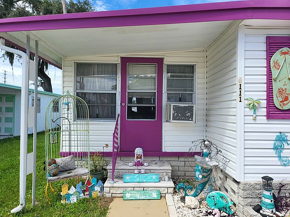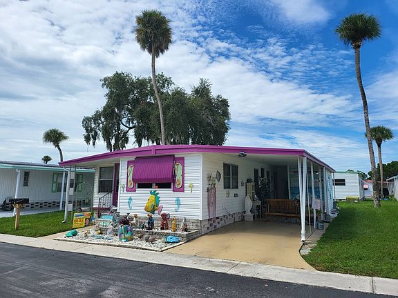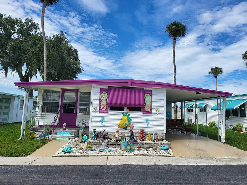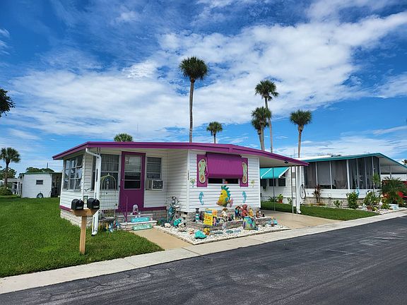 ***Welcome to Florida*** This is an adult community 55yrs the lot rent is $648.39 which includes water, sewer, garbage, and lawn service. Pet and Motorcycle friendly. This home is partially furnished, however the STACKABLE WASHER & DRYER, the outside MERMAID, the Large FISH out front on the ground and the wooden swing under the carport do NOT convey. **This home has a Wheelchair Ramp** This charming, bright, and quiet 1 bedroom, 1 updated bathroom with the convenience of a walk-in shower. Extra feature is a lovely sized enclosed Florida room with glass windows that you can decorate and make your own. This home features beautiful laminate flooring throughout, central air conditioning that is approximately 4 years old. The roof was sealed 2019 the home has been nicely maintained. See what New Port Richey has to offer- only minutes away from ocean front dining and live entertainment. *** Sales Price Does Not Include Tax(s), Tag and Title Fees etc.*** ***All new residents must pass criminal and credit background checks and have a verified income of at least 2-3 times the lot rent. *** **Occupancy only after park approval, having signed the park lease agreement and payment for lot rent is received by the management. Then keys will be released to buyer(s). Title(s) and registration(s) will be delivered on or before 60 days from the above requirements, other contractual conditions may apply. ** "All listing information is deemed reliable but not guaranteed and should be independently verified through personal inspection by appropriate professionals. our company cannot guarantee or warrant the accuracy of this information or condition of this property. The buyer assumes full responsibility for obtaining all current rates of lot rent, fees, and pass-on costs. Additionally, the buyer is responsible for obtaining all rules, regulations, pet policies, etc., associated with the mobile home park community from the park manager. Our company is not responsible for quoting of said fees or policies." This mobile home is being sold in AS-IS Condition Cash Only Absolutely NO Financing