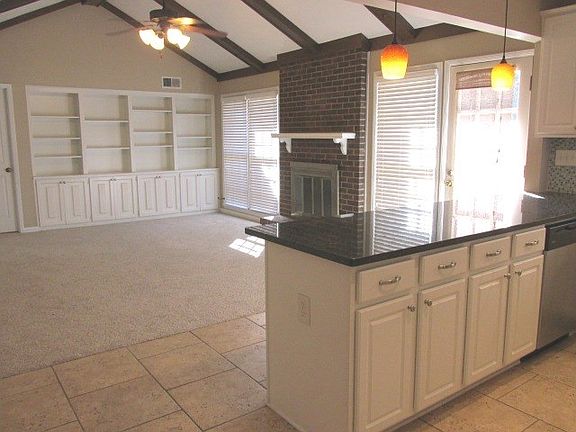 Youll love the open feel from the kitchen to great room! The kitchen is bright and clean with white cabinets, granite counters and lots of natural sun light. There is a wide breakfast bar and an abundance of pantry space. In the great room, you will have a whole wall of built-in cabinets and book shelves. There is plenty of space in the home with a formal dining room and another big bonus room. Three full baths is a definite convenience. Outside youll find a large patio and fenced yard.