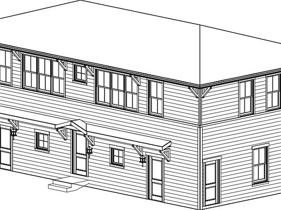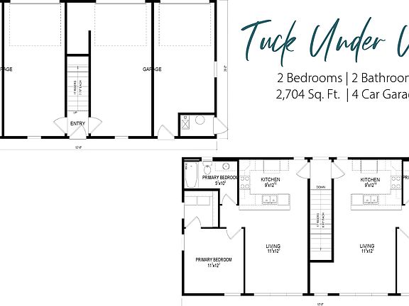 Behind the duplex are two separate tuck-under studio units, each with 1 bedroom and 1 bathroom, offering additional rental opportunities. Together, the studios above a 4-car garage span 2,704 sq. ft.