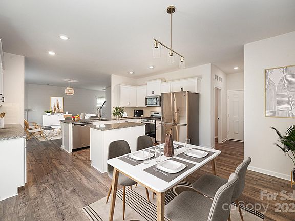 Stunning home w/ endless living space & privacy trees lining backyard for the ultimate retreat. Home is located just across from the Whitewater Center - a perfect place for year around fun & adventure, unique to Charlotte. Easy access to I-485 getting you to the airport or into Uptown quickly. Home welcomes you past covered front porch into formal entry w/ home office space to the left. 9 ft ceilings throughout + Vinyl plank flooring on main level. Open floor plan living room, kitchen & breakfast nook. Kitchen w/ side buffet area ideal for coffee bar or hosting + breakfast bar seating, S.S appliances, gas range & pantry for more storage. Upstairs large loft landing/bonus space perfect for game/media space. Primary retreat w/ vaulted ceilings + full bath w/ walk-in shower & dual sinks and huge walk-in closet. 3 additional beds w/ walk-in closets for family, guests or flex room + full hall bath. Back patio perfect for grilling & vacant lot next to home creates more space for outdoor fun!