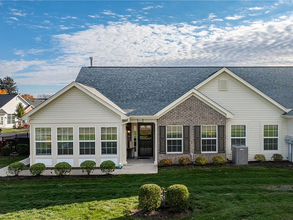 Discover effortless living in beautiful Scenic Ridge by Weaver Homes! Tucked away on a quiet cul-de-sac, this stunning patio home offers a bright open layout accented w/ vaulted ceilings, Pella windows, & a warm gas fireplace. The gourmet kitchen shines w/ white soft-close cabinetry, striking granite countertops, subway tile backsplash, & SS appliances. Enjoy versatile spaces throughout including an open dining area, gorgeous sunroom & a private den w/ glass paneled French doors. The spacious primary suite offers a walk-in closet & luxurious bath w/ an expansive quartz dual-sink vanity & custom tiled shower. Step outside to a private patio & take advantage of neighborhood amenities featuring a clubhouse, fitness center, outdoor pool, & pavilion w/ a rustic stone fireplace. Full size 2 car attached garage w/ convenient attic storage! Condo dues cover grass cutting, landscaping, snow removal, & exterior maintenance. Minutes from historic Harmony, Zelienople, and all things Cranberry!