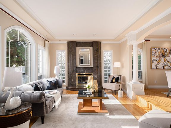 ONE OF THE BEST HOMES IN North BBY by experienced & reputable Italian builder. Finest craftsmanship. Huge 8385 sqft lot. South-facing w/gorgeous view. 18' high foyer with expensive tile floor & tasteful moulding work. Hardwood floor in the formal living, dining and family room. Curved stairway. 4 generous bedrooms upstairs, all with en-suites. Office on main floor. Gourmet kitchen with oversized island. Downstairs has one bedroom with an en-suite plus a large rec/theatre room, with a separate entrance. Triple Garage plus additional parking. Walking distance to elementary school and Burnaby North Secondary. Close to SFU, shopping and golf course. OPEN HOUSE Sat Nov 22, 2 - 4 pm.