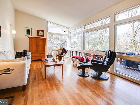 Opportunity to own a contemporary home with only two homeowners since it was built in 1963. Designed by an architect with vision, the open floor plan is sought after with its vaulted floor to ceiling windows. The Living Room and Dining Room both have walls of glass that overlook the backyard and lovely views of the mature perennial garden. The Dining Room exits out to the Deck, creating the perfect flow for outdoor entertaining and family gatherings. The Upper Level has 3 spacious Bedrooms and 2 Full Baths. The Lower Level is a walk out with a large Family Room, a 4th Bedroom, Full Bath, and an Office/optional 5th Bedroom. This 3 level contemporary home boasts of 2 wood burning Fireplaces and over 3000 sq ft of finished living space. Conveniently located to Friendship Heights Metro, ALL Airports, Shops, and just minutes to Washington DC. Easy access to the Capital Crescent Trail and downtown Bethesda. Bike to Georgetown, enjoy canoeing, hiking the Billy Goat Trail, or scenic walks along the Canal and Towpath.