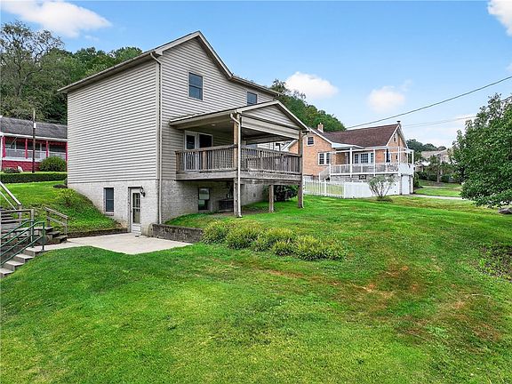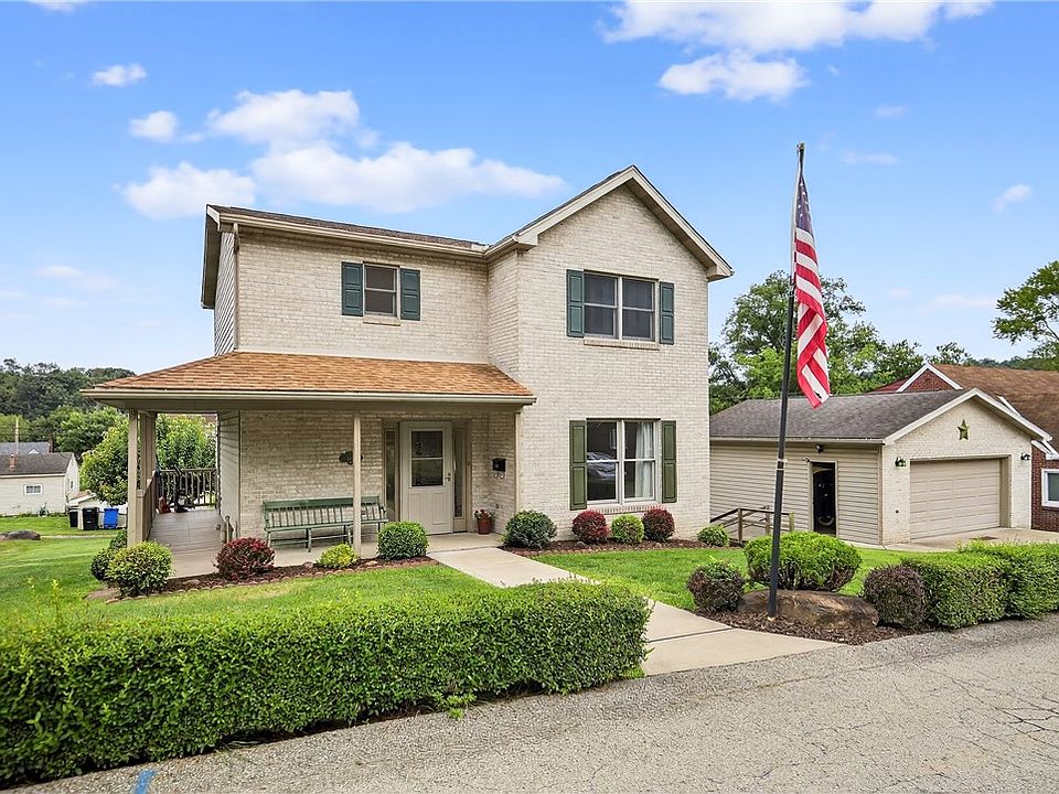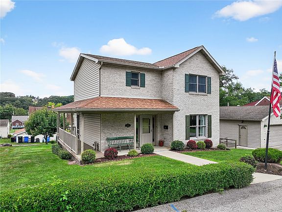 This beautifully crafted brick farmhouse located in Elizabeth Township and close to Great Allegheny Passage trail, offers timeless design with modern convenience. Thoughtfully custom-built, this home showcases quality craftsmanship, inviting living spaces, and natural light throughout. A set of French doors lead to the large covered deck perfect for your living and alfresco dining experiences. The lower level is home to a large family room with full bathroom and separate entrance offering direct access to the back yard and lower garage making this a great option for in-law suite or home office. The unique detached 3.5-car, two-story garage provides endless possibilities—whether you need space for vehicles, a workshop, storage, or even the potential for a studio or loft conversion.