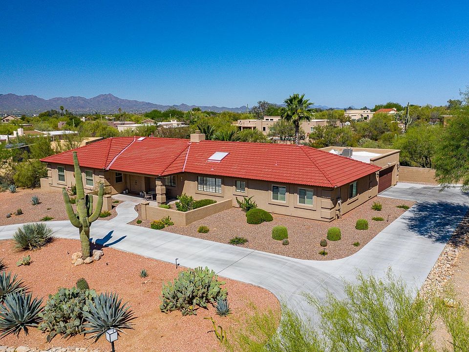 Opportunity! One of a kind move-in ready well maintained home in the desirable Shadow Hills Community within the Catalina Foothills School District! Catalina Mountain/Desert Views! Plenty of natural light, vaulted ceilings, large rooms and storage. Gourmet Kitchen boast of quartz counter tops, Bosch Stainless Steel Appliances and custom cabinets. Guest quarters, Stone tile floor throughout, Custom Plantation Shutters, large master bedroom with luxury master bathroom. Entertain in the serene resort-like backyard all year long with a large covered patio, travertine tile pavers, swimming pool, exotic firewall, vegetable garden, lush vegetation, built in BBQ kitchen island with granite counter tops and plenty of room for seating. House comes with a 1 year home warranty, whole house water filtration by LifeSource and alarm system.
