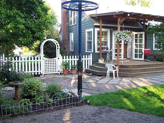 This restored beauty has 2BD with Updated Bath,bonus room in full basement.Refinished hardwds,new carpet,built-ins including media,cute kitchen w/ new flr,woodstove fp.French doors lead to private deck and FANTASTIC YARD!Gardeners paradise on this huge lot w/ pengola & ck coop!White picket fence surrounds beautiful landscaped front yard.