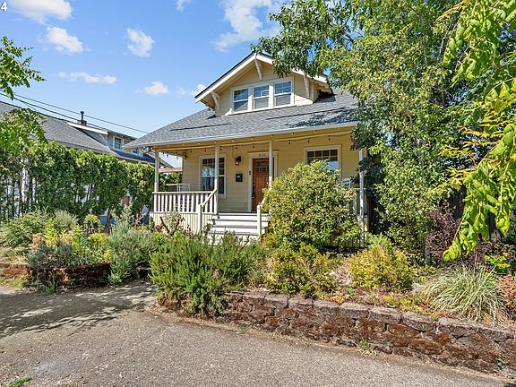 Beautiful Craftsman a couple of blocks from MT. Scott Park/Community Center and short walk to Woodstock! Classic crafty storefront w/ sunny porch for coffee and people watching. Walk inside and see dining and kitchen on the left, two living spaces on the right, and stairs straight up the middle to the two bedrooms above. Fantastic flow, flexibility, and orientation for a home this age. Long galley kitchen features stainless steel appliances, lots of counter/cabinet space. Two beds upstairs w/ plenty of ceiling height for comfortable living. Downstairs, another living space--perfect family/TV room, playroom, guest suite, etc. Brand NEW roof less than a year ago, NEW carpet, paint, blinds, fixtures, etc. Fir hardwoods. Central Air. Smart Google/Nest home systems integrated w/ lighting. Tightly landscaped, raised beds, micro-irrigated. Gravel patio, large shed for storage and/or workshop. Mt. Scott is undergoing a massive overhaul and will be re-imagined and modernized within a few years. Home also is part of SE Rising Plan going into effect Oct. 2024 and will be re-zoned RM1 as part of that infrastructure overhaul offering developmental/investment opportunity. Ideal location in a future-oriented burgeoning/blossoming neighborhood where parks, restaurants, and shopping abound! [Home Energy Score = 6. HES Report at https://rpt.greenbuildingregistry.com/hes/OR10190779]