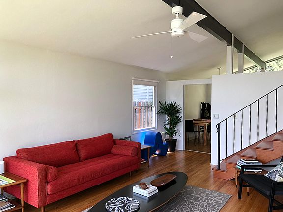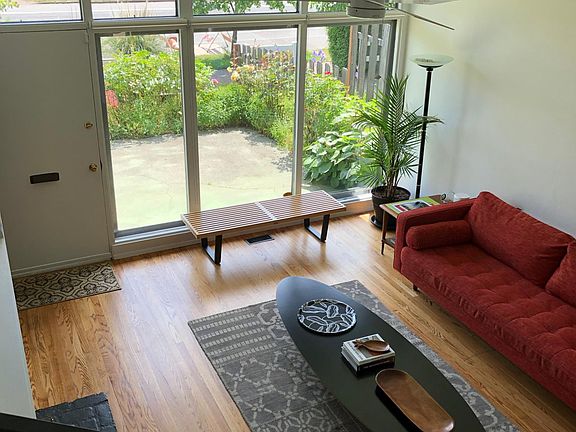 This house is only listed on Zillow, Trulia, HotPads and Apartments.com -- NOT ON CRAIGSLIST, Do not fall for scam postings! Mid Century Modern Gem with an amazing front and back yard for rent in SE Portland close to the heart of downtown Woodstock. The main level's living space and kitchen feature vaulted ceilings and full glass walls that bring in natural light. 3 bedrooms and full bath on upper level, and family room and half bath on the lower level (garage level). An efficient floor plan make this home feel spacious and perfect for entertaining. Mid century details throughout. Floors and exterior/interior recently refinished/painted and roller shades added to front window wall. Certified Backyard Habitat. Walk to coffee shops, restaurants, New Seasons, parks, and more within minutes! Attached Garage. Dishwasher/Microwave/Stovetop/Fridge in Kitchen. Washer/Dryer on Lower Level. Move in date: Early/Mid May. Lease Duration: 12 months Yard Maintenance included in rent. Utilities: Garbage, Recycling, Compost included. Tenant pays for Gas, Electricity, Water/Sewer. Pets: Small dogs allowed. Must pay additional $500 security deposit per pet. No smoking on the entire premises. Applicants who apply to undergo a background and credit check. Must have verifiable rental history with rent paid on time and no additional complaints. Tenant to sign Rental Agreement upon approval.