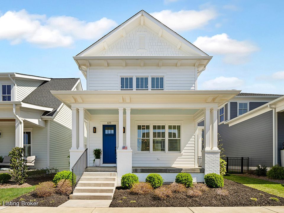 Welcome to this beautifully designed two-story home in the heart of Norton Commons. Featuring a finished basement and a spacious three-car garage, this home offers exceptional space and style for comfortable living. Step inside to discover an open floor plan with soaring ceilings that create a bright and airy atmosphere throughout. The gourmet kitchen is a chef's dream, featuring custom-built cabinetry, stainless steel appliances, a gas range, quartz countertops, and an expansive island perfect for entertaining. The open kitchen seamlessly flows into the dining and living areas, anchored by a cozy gas fireplace. The first-floor primary suite provides convenience and privacy, boasting a luxurious en-suite bath and spacious walk-in closet. A first-floor laundry room and thoughtfully designed mudroom add everyday ease and functionally. Enjoy outdoor living on the covered front and side porches,. And take advantage of the fenced side yard - ideal for pets, play, or gardening - kept lush by a full irrigation system. Located in the vibrant community of Norton Commons, this home is just steps away from an array of amenities including restaurants, shops, parks, community pools, dog parks, an amphitheater, and a scenic lake. Enjoy more life per square foot in this one-of-a-kind neighborhood. Don't miss the opportunity to make this exceptional home yours in one of Louisville's most desirable communities.