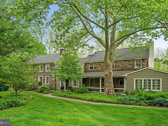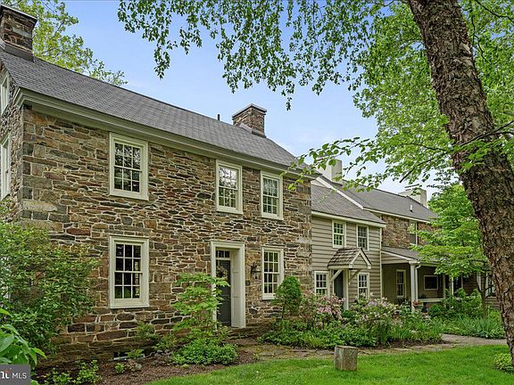 Panoramic views of sunrises and sunsets over the rural, scenic countryside await from this picturesque stone manor home with pool and guest house on 3.97 acres. A long tipple driveway with governor’s turnaround leads up to the original farmhouse, c. 1750, and further back to a 4-car garage. Many original features including random width wood plank floors, deep window sills, built-ins, exposed beams, and walk-in fireplaces, remain as thoughtful updates and additions were added throughout the years. This enticing property has been meticulously maintained and offers over 5,000 sq.ft. of living space including 5 bedrooms and 3 ½ bathrooms. The Chef is offered top-of-the-line tools and materials such as soapstone counters and sink, Wolf 6-burner cooktop, double wall ovens, and a built-in refrigerator. Serve culinary creations at the open dining area with a fireplace. Relax in one of the peaceful sitting rooms or gather with loved ones in one of the larger rooms for entertainment. There is a covered porch with a ceiling fan to enjoy the evening breeze. The upstairs sleeping quarters provide convenience and privacy, with fireplaces in some rooms and 2 of the bedrooms ensuite. The primary bedroom includes a walk-in closet. A third full bathroom is shared by the other bedrooms. Summer by the inground pool and cabana, with sweeping views across the lush fields and meadows. Ever blooming gardens and flowering trees insure incredibly beautiful views inside and out. A pool house features an entertainment room with access to a half bath. The second floor of the barn includes a full kitchen, full bathroom, living room and bedroom with a walk-in closet and could serve as a caretaker or guest house. A separate laundry area is accessed from the barn/pool home for the apartment and pool use. This impressive country retreat is surrounded by priceless serenity and is located walking distance from one of Bucks County’s historic covered bridges. An ideal setting for those inspired by beauty and ambiance. Located just west of the Delaware River and quaint river villages, this is as convenient as country living gets. Drivable to New York and Philadelphia. Nearby farmers markets and parks offer additional recreational opportunities, and Doylestown and New Hope provide exceptional cultural venues and entertainment. Make this bucolic retreat your own!