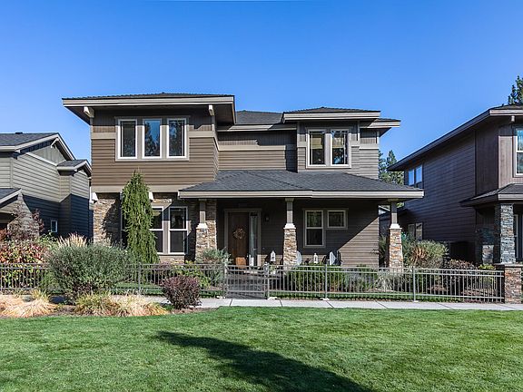 Certified Green Earth Advantage, located close to The Old Mill, The Deschutes River, Hiking Trails, and a short drive to Mt. Bachelor Ski Resort. This home is turn key with low maintenance living. This home features 10' ceilings, over-sized Milgard windows, 8' doors, open floor plan, over-sized kitchen w/island, gas hood vent cook top, opens to the fireplace great room, ideal for entertaining. Newer wide plank real birch floors. Kohler fixtures, bamboo wood/Hunter Douglas blinds, a 40 yr. roof, designer paver patio with retaining wall, privacy to the 2 outdoor patio settings. Over-sized garage with e-poxy flooring, low maintenance gated front yard with large grass frontage w/ view of community pool and park. Flex area upstairs, huge walk-in master closet. This home has been very lightly lived in and shows like new! Recent improvements include refinished stamped concrete patio, exterior painting, interior painting, replacement of carpets with premium Belgium wool carpets AirBnB possible