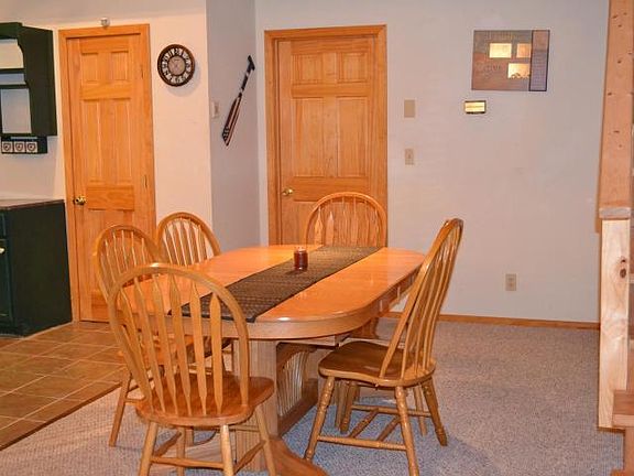 Spacious Knotty pine finish. 3 bedrooms with private baths. Oversized living/dining area, open to the kitchen. Enclosed sunroom/porch with laundry. Loft room is 3rd bedroom and is large. Subdivision has boat ramp for lake access. Seasonal lake view.*GV
