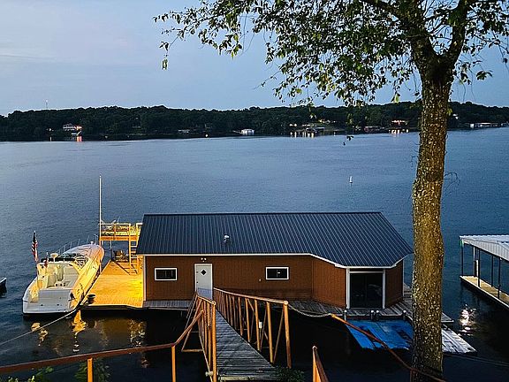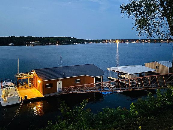 Honey Creek Home on Beautiful Grand Lake of the Cherokees in Grove OK. Property has 3 slip enclosed heated dock w/3 lifts & 2 swim decks, wired Tree House, air conditioned sitting shack built into the bluff, office overlooking the lake, 2 large storage sheds, large outdoor entertainment area. Investment property (2 rental homes) behind lakefront house, can be bought for additional with the lakefront house/property