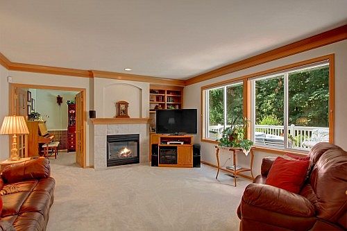 This immaculate home is situated in a private, quiet cul de sac. 3 bedrooms, den, large bonus room, living & dining room, 2 1/2 bathrooms and a 3 car garage.Spacious kitchen features a gas cooktop,built in desk,lots of cabinets.Large family room features a wall of windows, built in bookcase & 2 sided gas fireplace for the adjoining den.Upstairs of this home features 3 bedrooms plus a large bonus room. Enjoy relaxing on the large private deck. Just minutes to the golf course too!