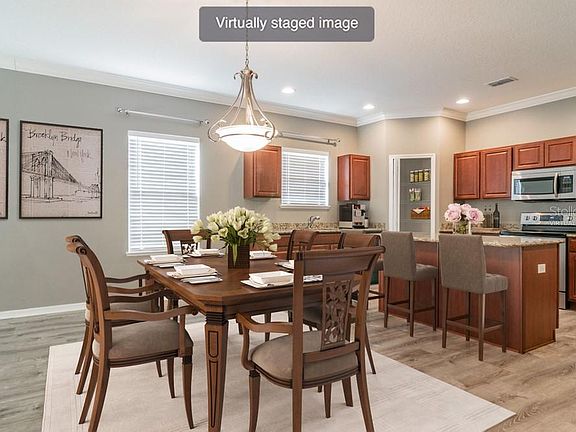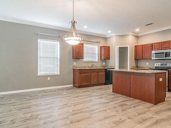 - Interior Features: Eating Space In Kitchen, Open Floorplan, Stone Counters, Walk-In Closet(s), Crown Molding, Kitchen/Family Room Combo
