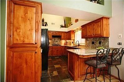 INCREDIBLE Kitchen, boasting beautiful granite counters, slate flooring, ample storage in the custom cabinets.