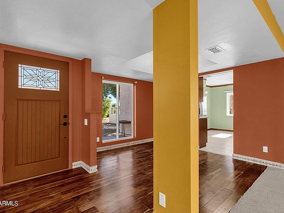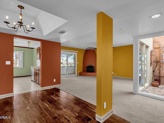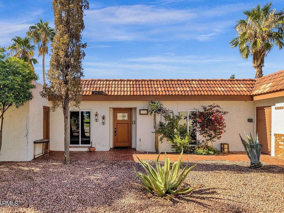 This charming 2 bed, 1.75 bath home on a Cul-De-Sac and Golf Course lot is one you won't want to miss! New wood flooring sweeps through the entry way and dining room while tile sweeps through the kitchen and laundry room. Carpet warms up the living room and bedrooms. Large windows in each room keep the home feeling light and bright. Step out into your private atrium located in the center of your home. Gather your family and friends around the fireplace in the living room for a cozy night in. The remodeled kitchen boasts stainless steel appliances, granite countertops, and plenty of cabinetry. Park your cars in the 2 car garage fit with a workbench! Step outside your sliding glass door and onto covered patio. Enjoy the quiet community as you watch golfers play the 4th Hole of Painted Mountain Golf Course. Enjoy your spacious backyard that is perfect for hosting gatherings! Recent seller updates include remodeled kitchen and bathrooms, updated flooring in the kitchen, laundry room entry way and dining room, AC updated in 2019, roof refinished in last four years, as well as new windows and sliding glass door installed in 2020. Centrally located in east Mesa, this property is close to numerous Golf Courses, shopping centers and more! Hurry, this beautiful home won't last long! Professional photos coming soon!