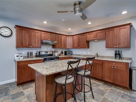 The garage is huge and could easily hold 4 cars, then walk into the well appointed kitchen with gorgeous granite counters, gas stove and a fabulous island. The living room is enormous with tons of natural light and stunning floors. The formal dining room is conveniently located right off the kitchen. There are 4 big beautiful bedrooms and then a 5th that could easily be a bedroom or an office. As if all of this wasn't enough there is an on demand hot water system with radiant in floor heating that feels just fabulous on your toes!