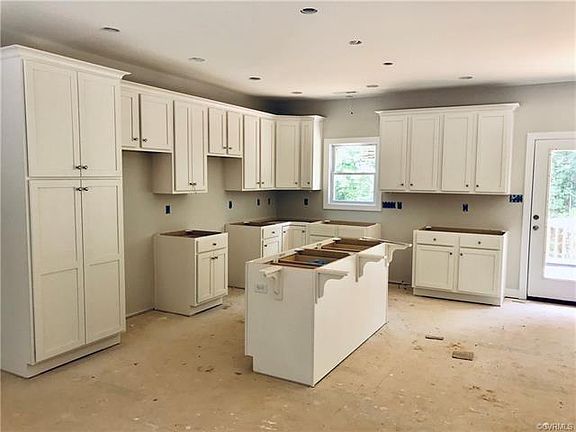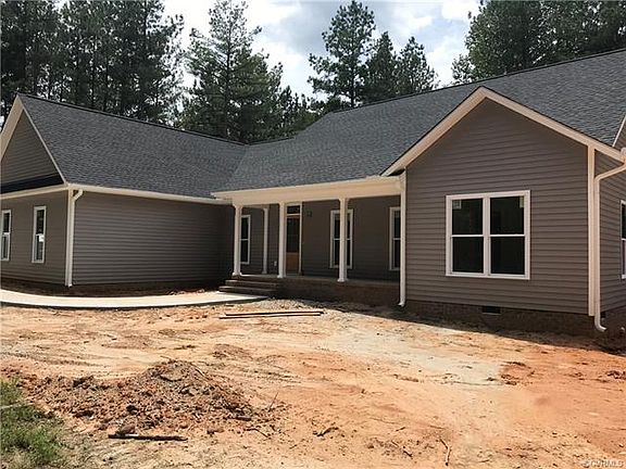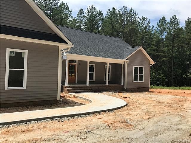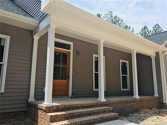 New Construction on 2.1 acres in western Powhatan. This custom three bedroom, three bath home welcomes you home the minute you pull in the driveway. Through the solid wood front door, you enter into the great room. Your open floorpan boasts a gas fireplace with custom shelving on either side, an eat-in kitchen with an island for maximized counter space and a dining area near the door to the back deck. Off the living room is a flex room that could be used as an office, playroom, or media room. The Master Bedroom has two walk-in closets and a spa-like bathroom with double sinks, a water closet, and tile shower. The second and third bedrooms are on the other side of the home and share a full bath. The powder room and laundry room are found in the hallway leading to the oversized, side-load, garage. When complete, this home will have hardwoods throughout, custom cabinetry, stone countertops, and much more. Estimated completion by the end of summer.