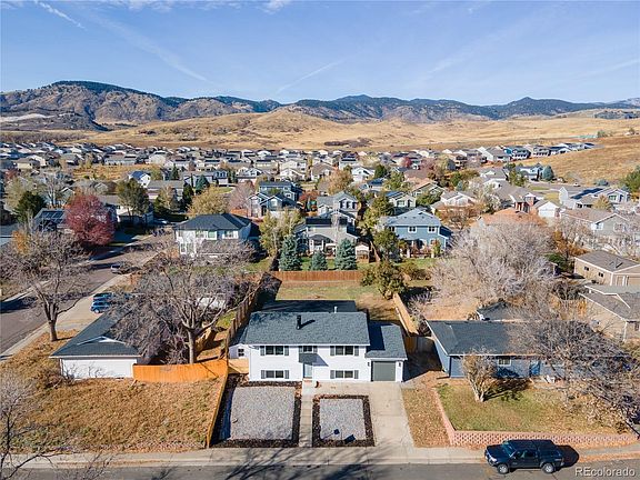 Click the Virtual Tour link for the aerial video! You'll love this beautifully updated home featuring Maverick Design finishes, in the highly coveted Apple Meadows neighborhood of Golden! Come live next to North Table Mountain featuring hiking and biking trails, and you'll be just minutes from Downtown Golden! On the upper level, you'll have 2 nice-sized bedrooms with beautiful views, an updated stylishly designed full bathroom, and a flowing floorplan featuring an updated kitchen with two-tone colored shaker-style cabinets plus a pantry, a living room area, and a family/dining room add-on off the back with a fireplace and lots of sunlight, plus tremendous views. The lower level has a large family room, laundry area, 2 additional bedrooms, and another modernized full bathroom. On the side of the home you can enjoy your large 1 car garage and driveway space for another vehicle, and on the other side in the backyard is a huge shed for all your tools and gear. Updated features include interior and exterior paint, a new roof, new furnace and water heater, all new LVP, carpet, and tile flooring, quartz kitchen countertops and new base cabinets, tile backsplash, stainless steel appliances, stylishly updated bathrooms, ceiling fans, lighting fixtures, door and plumbing hardware, landscaping with partially new fencing, and the list goes on! The location is great - you’re next to North Table Mountain AND Long Lake Park, and within a short distance are an abundance of restaurants, coffee shops, grocery stores, schools, shopping, and entertainment. Come check it out and fall in love!