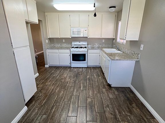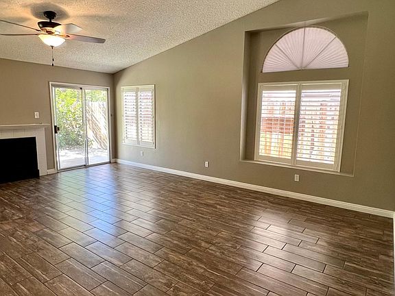 Move-In Special, December Month Rent Free with a 13 month Lease. Move in with just your deposit. This 3-bedroom, 2-bathroom home has updated wood looking tile plank flooring throughout the house with carpet in the bedrooms. The living room has two house fans that pair perfectly in color with the flooring, a fireplace, plenty of cabinet storage, granite counter tops in the kitchen with matching white appliances, such as a microwave, a dishwasher, and a gas stove, a dining room with front of house views. The back yard on this home is an amazing size with a shaded patio and gorgeous green grass. It is a mile away from 3 shopping centers, 2 parks with in a 10-mile radius, and an elementary school that is walking distance. Owner pays landscape, and trash.