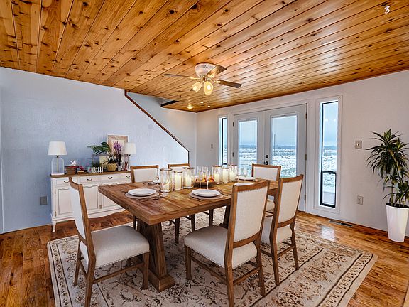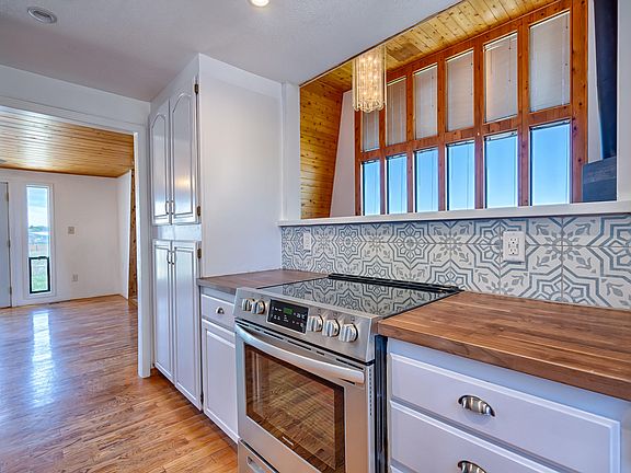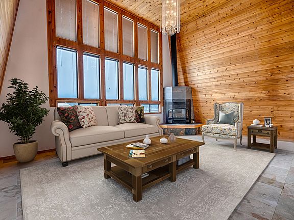 $5,000 credit to buyer for closing costs!!!! Privacy and views galore from this gorgeous 5 bedroom home on 2.5 acres. Just remodeled home makes country living luxurious with newkitchen and baths, metal roof, oak hardwood floors, travertine, wood stove, garage, and well with cistern. T&G vaulted ceilings in the living room, a wood stove,over 3300 sq. ft. (including basement) this home would make a great retreat or year around home. Barn style home has insulation in the walls and ceilings. Fenced area for animals, storage shed and majestic views!